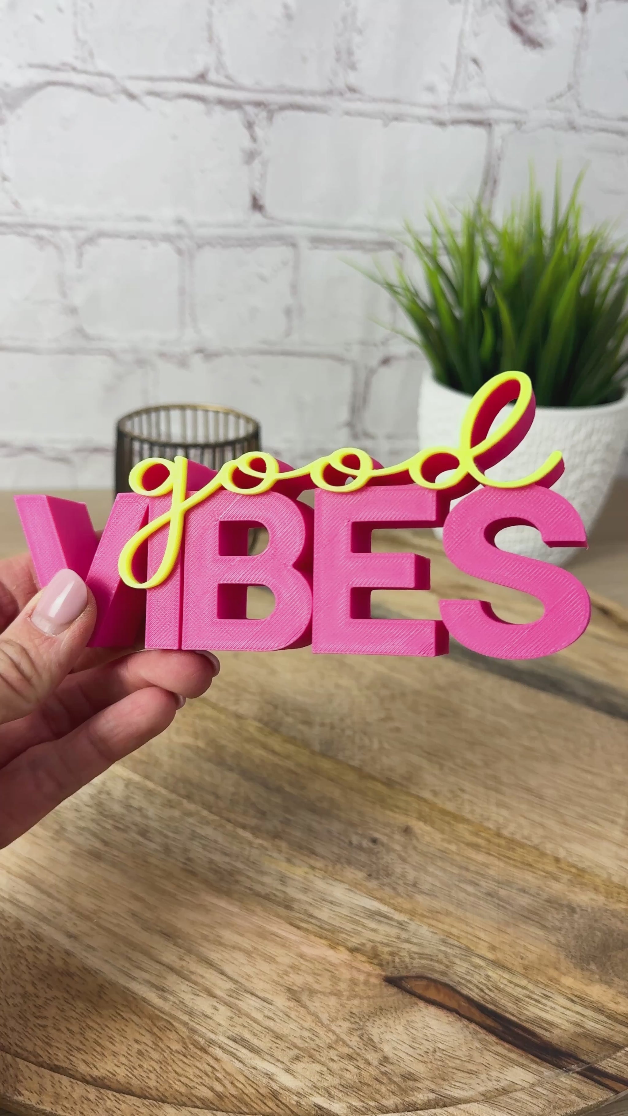 Der 3D Schriftzug good Vibes ist eine liebevolle Geschenkidee für den Geburtstag deiner besten Freundin, zur Einweihung einer neuen Wohnung oder einfach als kleine Aufmunterung im Alltag. Er bringt Farbe, Freude und eine klare Botschaft mit: Hier wohnen die guten Vibes.